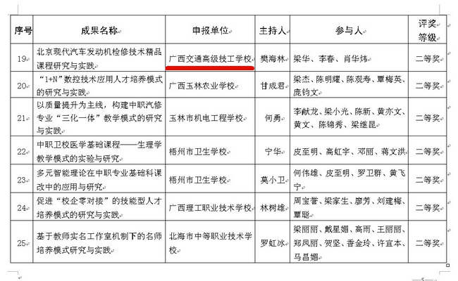我院四項教學教改成果榮獲第八屆廣西中等職業教育教學改革成果獎項