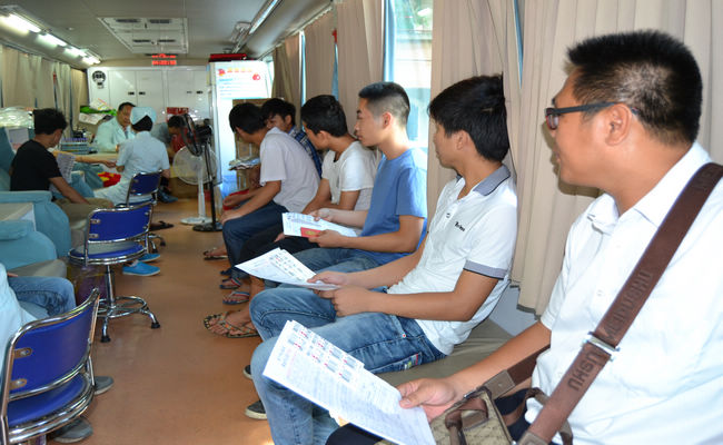 圖三:教師(shī)與學生(shēng)們正在排隊等候獻血(xuè)