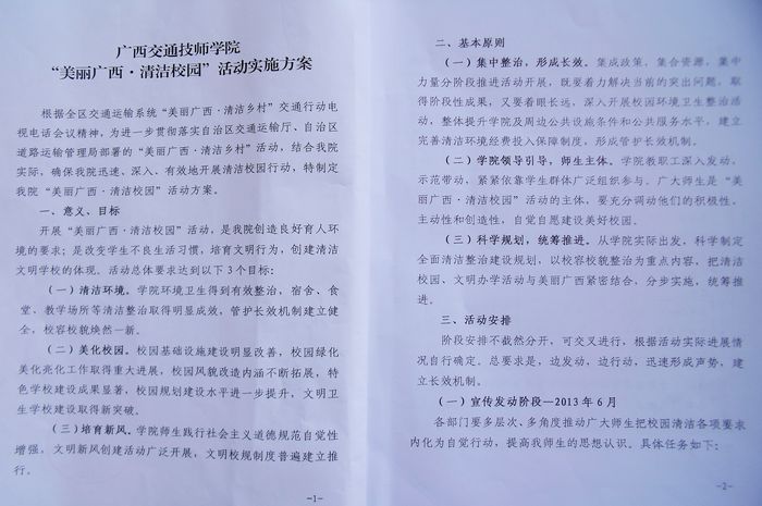 圖為我院“美麗廣西•清潔校園”活動實施方案(àn)部分內容