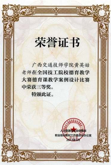 黃英姑老師(shī)榮獲德育課教學案例(lì)設計比賽項目三等獎;