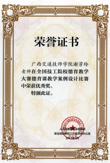 謝芳玲老師獲獎(jiǎng)證書