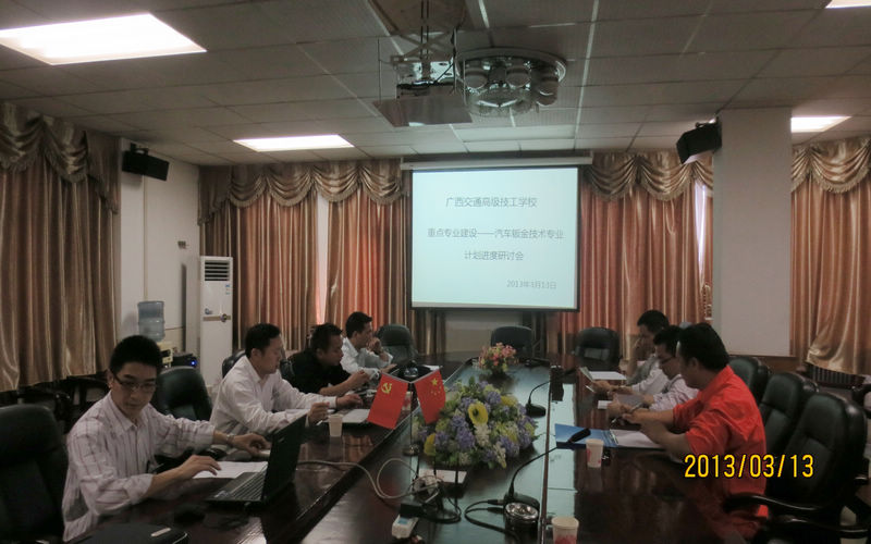 2013313日下午,汽(qì)車工程係示(shì)範校重點專(zhuān)業建設——汽車鈑金技術(shù)專業所有項目負責人,在學院辦公樓二樓會議室對該專業建設(shè)工作進度(dù)進行匯總,並(bìng)做(zuò)了下一階段的工作安排。會議主持人由韋軍新副主(zhǔ)任負責,參會人員有(yǒu):馮培林、羅宗港、張俊華等八位汽車(chē)鈑金專業教師。