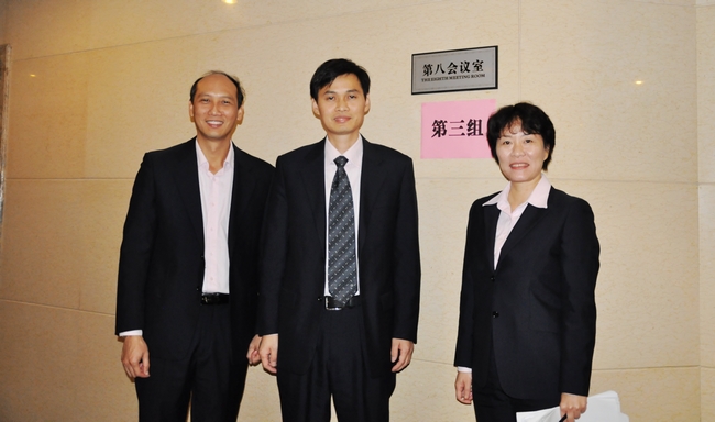 圖八:韋紅教院長(中)、關菲明副院長(zhǎng)(左)、鄭超文主(zhǔ)任(rèn)(右)在答辯會場外合(hé)影
