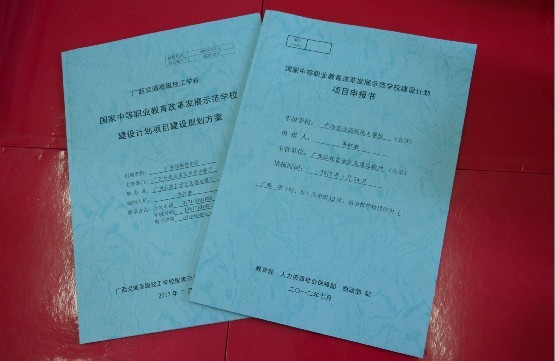 圖為我校國家中等職業教育改革發展(zhǎn)示範學校建設計劃項目申報書和規劃方案