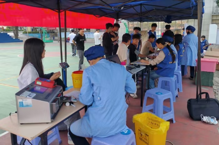 盡(jìn)管有的同學十分害怕疼痛,但是仍舊目光堅定地(dì)擼(lū)起了自己的袖子,為醫療事業獻出了自己的一份愛心。