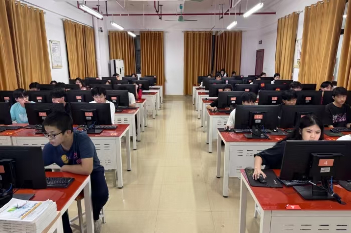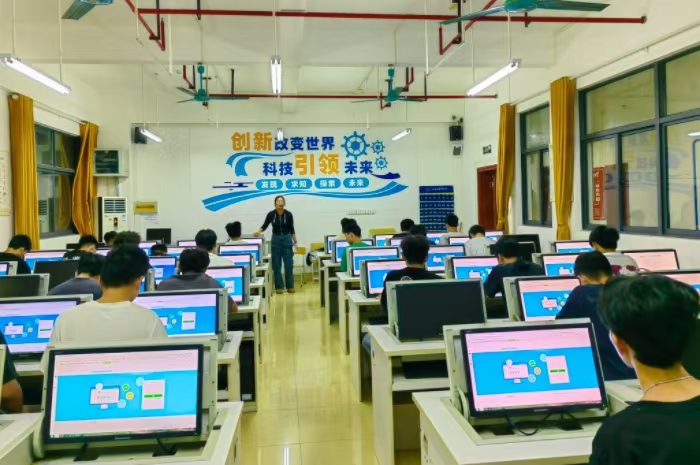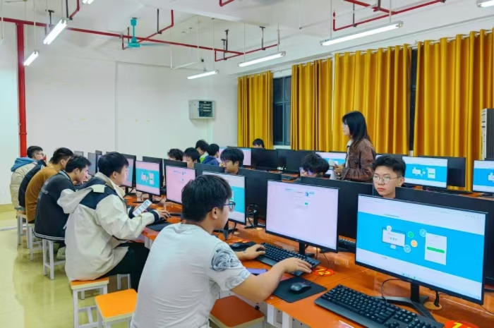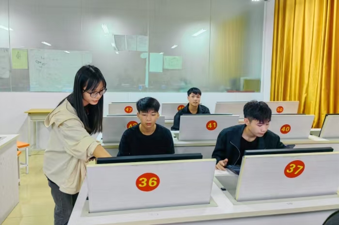 學生工(gōng)作科老師指(zhǐ)導學(xué)生登錄(lù)係統