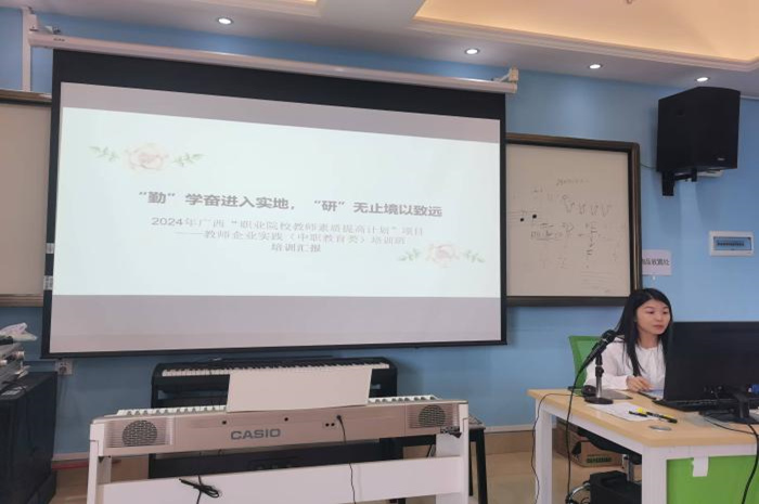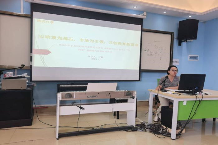 首先是(shì)甘穎老師以職業教育為(wéi)基,融合教育為橋,深刻體會為引,作了題為《以政策為基石,以(yǐ)市場為引領,共創教育新篇章》的分享。她從(cóng)培訓內容、培訓收獲和培訓成果轉化三個方(fāng)麵跟大家開展分享,並深刻總結了本次外出培訓對其教學方(fāng)式和觀念(niàn)改(gǎi)進與提升的心得感悟。在此過(guò)程中,甘穎老師的分享(xiǎng)毫無保留、邏輯清晰,現場教師們(men)也認真地傾聽並做筆記。