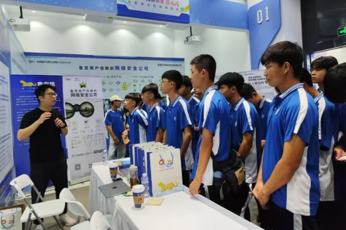 學生們懷著期待(dài)與好奇踏(tà)入展覽場地,仿佛進入了一個全新的維度。展覽現場人頭攢動,熱(rè)鬧非凡。此次參展網絡安全廠商共有9家,他們從網絡與基礎安全架構、端點與主機安全到業務安全、數據安全、安全服務等五(wǔ)個方麵,展示了(le)他們在網絡安全領(lǐng)域的最(zuì)新技術成果和(hé)創新產品,學生們大開眼界,深(shēn)刻感受到了網(wǎng)絡安全技(jì)術的不斷(duàn)進步和(hé)發展。