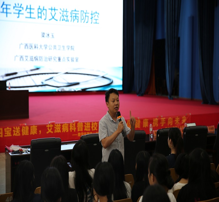 為培養學生良好的衛生習慣(guàn)和生活方(fāng)式,提高學生健康素質。5月8日,我院組織開展健康教育專題講座。邀請廣西醫科大學公共衛生學院梁(liáng)冰玉,南寧市第四人民醫(yī)院董文逸、洪豔群、黃金萍四名(míng)專家圍繞艾滋病防控知識進行(háng)講授。