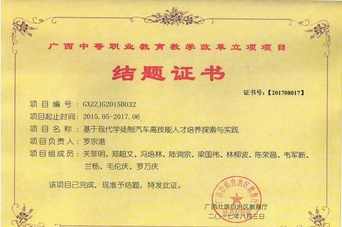 獲評廣西職業教(jiāo)育自治區(qū)級教學成果一等等次