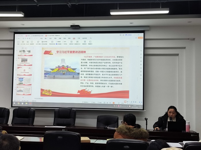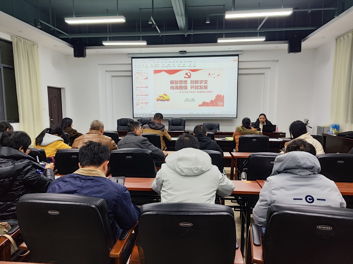 為深入學習習近平考察廣(guǎng)西重要講話精神(shén),12月20日,學院副院(yuàn)長伍陽同誌以《解放思想 創新求變 向海圖強 開放(fàng)發展》為主題,為交通工程係黨(dǎng)支部全體(tǐ)黨員講(jiǎng)授了一堂生動的專題黨課(kè)。