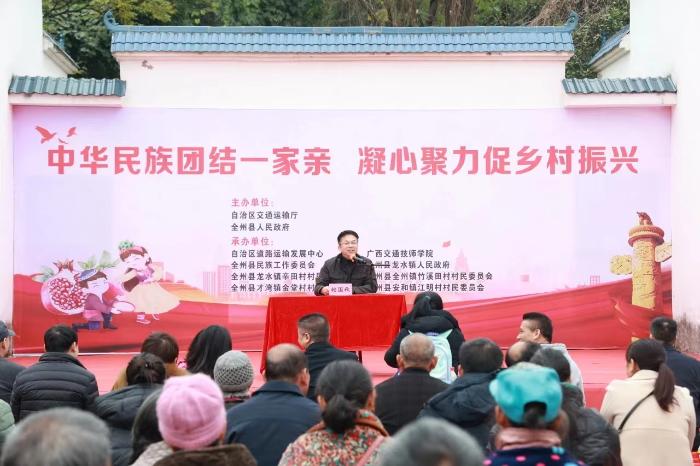 為深入貫徹落實黨的二(èr)十大精神和習近平總書(shū)記關於“大思政課”的重要指(zhǐ)示精神,全(quán)麵落實《關(guān)於新時代加強和改進思想(xiǎng)政治工作的意見》《全麵推進“大思政課”建設的工作方案》等(děng)文件要求,結合(hé)學院思(sī)政課程建設任務,12月1日,基礎學科部黨支部、管理第一黨支部黨員代表與學生誌願者赴桂林全州縣辛田村開展“行走的‘大思政課’課堂”,配合自治(zhì)區交通運輸廳、全州縣人民政府(fǔ)聯合開展(zhǎn)“中華(huá)民族一家親 凝心聚力(lì)促鄉村振興(xìng)”活動,助力鄉村振興工作。