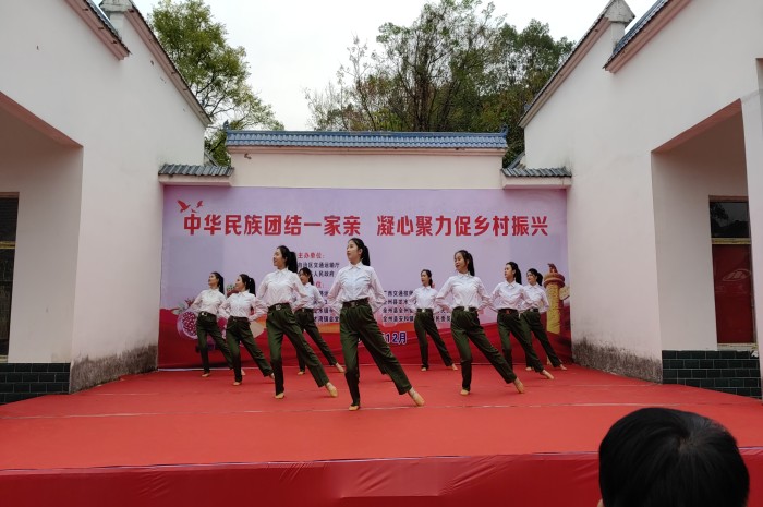活動中,學院黨(dǎng)委書記賴國秋圍繞“國家民族政策、廣西少(shǎo)數民族介紹、廣西少數民(mín)族地區發展情況”三方(fāng)麵,用樸實的語言給大家作了民族團結知(zhī)識宣講,受到群眾(zhòng)的一致好評。隨後,文藝(yì)匯演在我院學生啦(lā)啦操表演《親愛的旅人》中拉開序幕,隨後,我(wǒ)院師生代表分別獻上詩朗誦《我在一顆石榴裏看見了我的祖國》、獨唱(chàng)曲(qǔ)《我和我的祖國》、民族舞《錦繡壯鄉》等精彩紛呈的節目,現場歡(huān)聲笑(xiào)語不絕於耳。在文藝匯演過(guò)程中,還穿插民族團(tuán)結知識問答,不僅增強(qiáng)廣大人民群眾的民族(zú)團結意(yì)識,還傳達各(gè)族人民永遠跟黨走的堅定決心,鞏固民族團結情誼,營造出團結(jié)、和諧、奮進的良好氛圍。