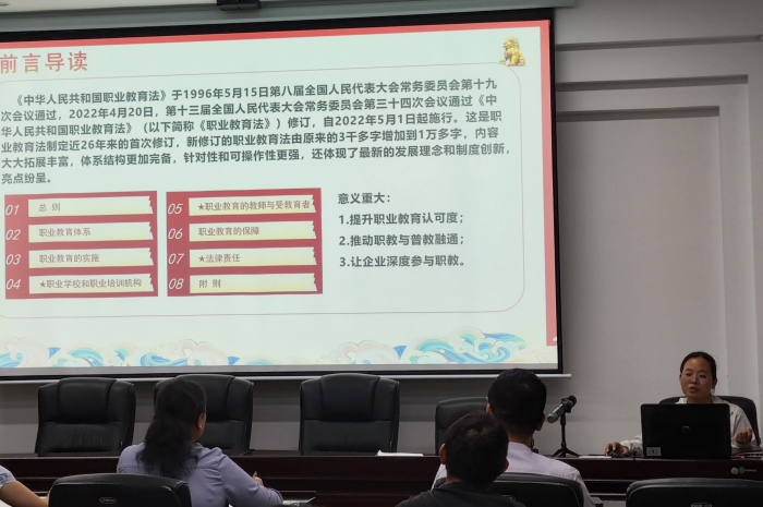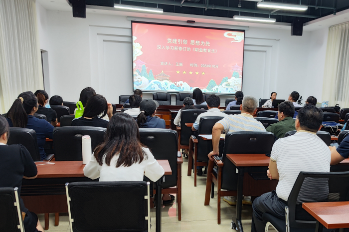 為深入貫徹落實習總書記關於全麵從嚴治黨重要論述,推進和構建新時(shí)代師德師風建設長效機製,全(quán)麵提(tí)升教師(shī)思想(xiǎng)政治(zhì)素質和職業道德水平,營造風清(qīng)氣正的職業(yè)教育生態(tài),10月25日,交通工程(chéng)係在邕武校區集中學習新時代師德(dé)師風建設和《中華(huá)人民共和國職(zhí)業教育法》,學(xué)院副院長伍陽蒞臨會場指導,交通工程係(xì)主任張磊、副主任韋照俊和全係教師參加會(huì)議(yì),會議由交通工程係黨支部書(shū)記(jì)孫廣福(fú)主持。