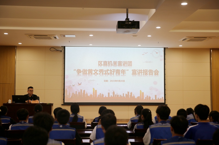 近日,區直機(jī)關宣講團(tuán)“爭做黃文秀式(shì)好青年”宣講報告(gào)會在我院舉辦。自治區直(zhí)屬機關工(gōng)委講師團二級調(diào)研員黃群出席,區直機關宣講團成員(yuán)林超俊作(zuò)宣講,廣泛宣傳文秀精(jīng)神,學(xué)院近150名學生代(dài)表參(cān)加。