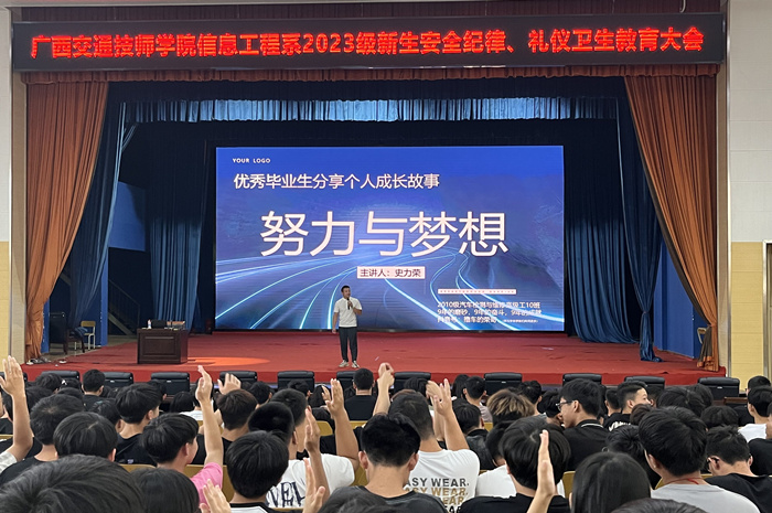 在楊行(háng)銘老師的安全(quán)教育講(jiǎng)座完(wán)畢後,信息工程(chéng)係還邀請了往屆優秀畢業生史力榮分享他在校期間的個人成長故事。史力榮通過精(jīng)心準備的課件,用他豐富、專業的理論知識和多年工作經驗為同學們講解(jiě)了在校期間的成長方向和畢業之後未來規劃,幫助2023屆新生答疑解惑。