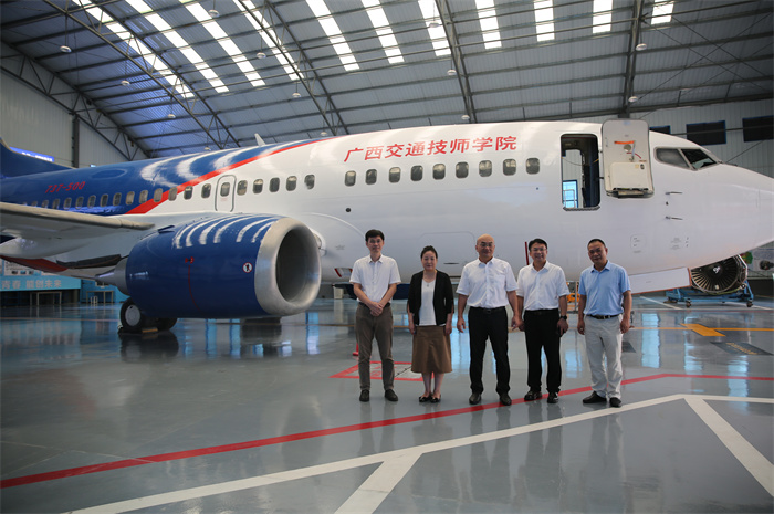 與會領導(dǎo)參觀學院飛機維修實訓基地