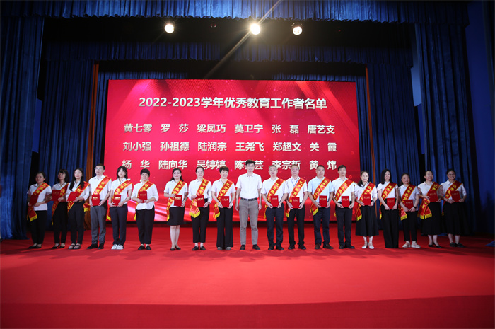 表彰會上,劉(liú)芳宣讀表彰文件,與會領導為獲得優秀教師、優秀教育工作者和優秀(xiù)班主任榮譽稱號的教師頒發(fā)榮譽證書。優秀教師代表羅宗港、優秀教育工作者代表羅莎、優秀(xiù)班主任代表劉玉蓮、新進教師代表(biǎo)覃玲媛上台發言。