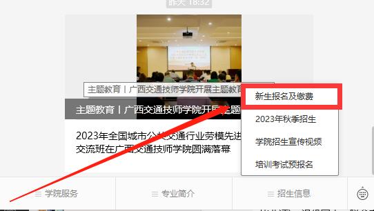 2.點(diǎn)擊“招生信息“--”新生報名及繳費“