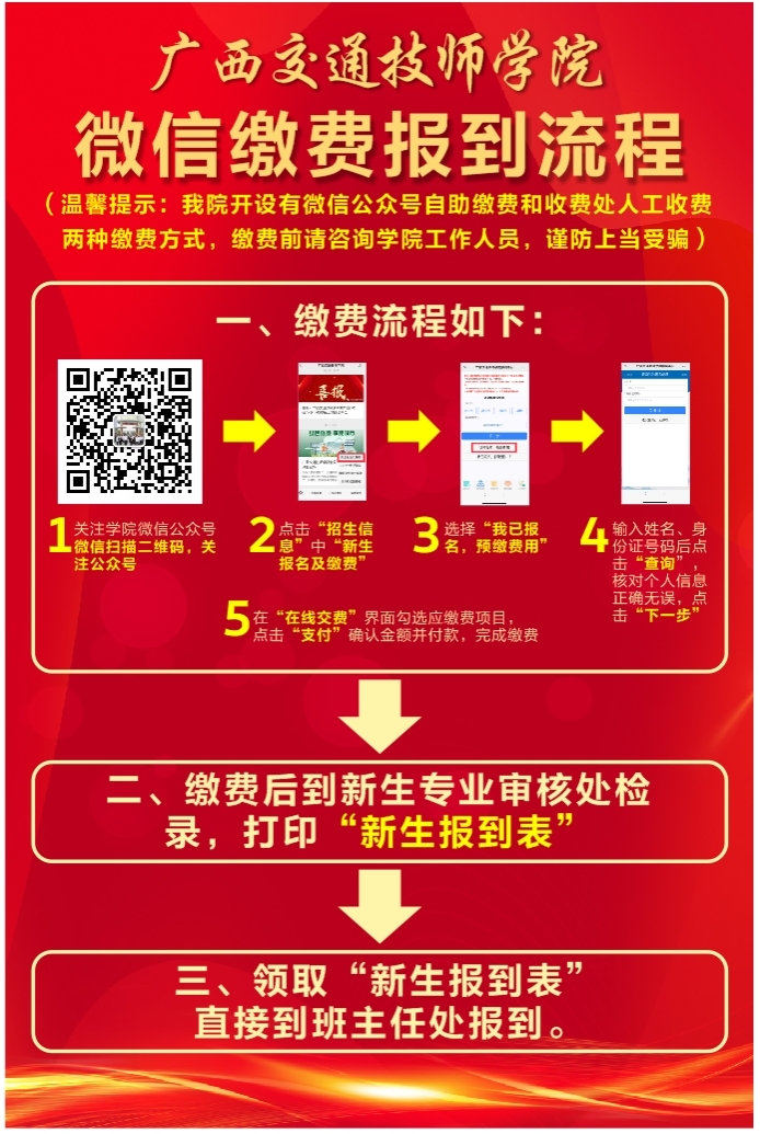 溫馨提示:我院開設有微信(xìn)公眾號(hào)自助繳費和收費處人工收費(fèi)兩種繳費方式,繳費前(qián)請谘詢工作人(rén)員,謹防上當受(shòu)騙!