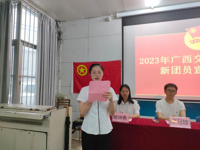 為增(zēng)強新發展團員的光榮感和使命感,激勵廣大團員青年弘揚中華民(mín)族偉大精神,在新時代新征程上勇擔使命、奮勇前進,6月(yuè)13日下午,學院團委在邕武校區、長堽校區和伊嶺校區同步舉(jǔ)行2023年新發展團員入團儀式。學院共青(qīng)團(tuán)幹部、新發展(zhǎn)團員、入團積極分子和團員青年代表參(cān)加活動。