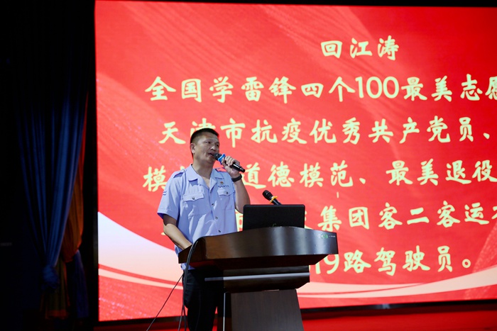 全國學雷鋒四個100最美誌願者(zhě)、天津市抗疫優(yōu)秀共產黨員、勞動(dòng)模範、道德模範、最美退役軍人回(huí)江濤講(jiǎng)述了用心打造“天津公交頭等艙”的動人(rén)故事。他在宣講中說道:“這(zhè)23年中我始終堅持的一件事是不斷探索車廂人性化服務的深(shēn)加工,讓乘客在十米車廂裏坐享幸福。”