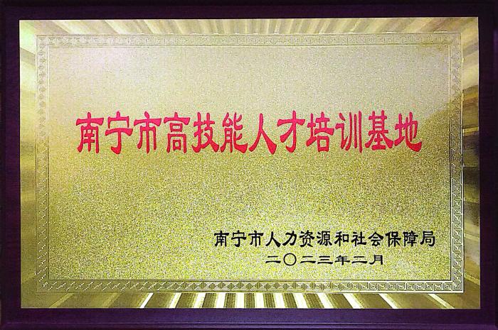 “南寧市高技能人才培(péi)訓基地”榮譽牌匾(biǎn)