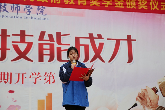 信息工(gōng)程(chéng)係2021級現代物流中級工班(bān)龍佳嫻在頒獎儀式上發言。她向一(yī)直(zhí)以來關心、教育和幫助我(wǒ)們成長成才(cái)的各位領導、老師表示最(zuì)真(zhēn)摯(zhì)的感謝(xiè)和最崇高的敬意。表示,今後(hòu)將腳踏(tà)實地,潛心鑽研(yán),夯實基礎,既要掌(zhǎng)握知識本領、身懷一技之長,也要(yào)積澱職業素養,牢固樹立敬(jìng)業守信、精益求精的職業精神。