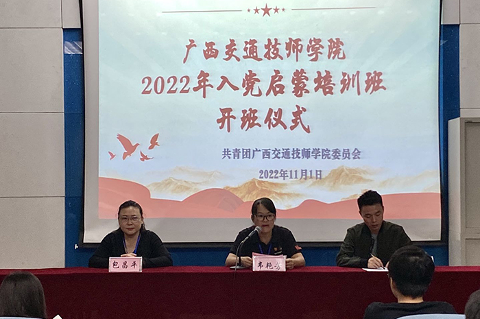 11月1日—4日,學院團委在邕武校區和伊嶺校區舉(jǔ)辦了2022年入黨啟蒙(méng)教育培訓班,幫助(zhù)廣大團員學生掌握黨的基本知識、基本理論和基本路線,提高(gāo)思想覺悟,端正入黨動機,樹立(lì)正確的世界觀、人生觀和價值觀,增強黨在青年學生(shēng)中的吸引力和凝聚力。