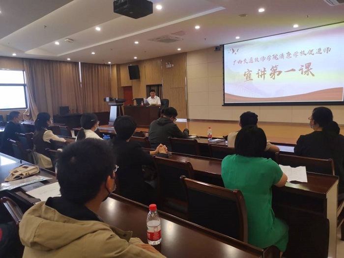 10月19日,交(jiāo)通工(gōng)程係黨支部在邕武校區綜合樓1619會議室(shì)開展清(qīng)廉學校促進師宣講第(dì)一課,本次宣講由支部書記張振旺同誌作主講,支部(bù)全(quán)體黨員參加。