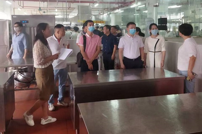 驗收專家組在烹飪專業實訓場地進行現(xiàn)場考察