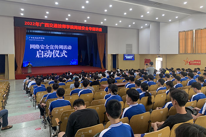 9月5日,在學院信息中心組(zǔ)織下,2022年(nián)國(guó)家網(wǎng)絡(luò)安全宣傳周活(huó)動啟動儀式(shì)在學院禮堂順利舉行,學(xué)院副院(yuàn)長關菲明出(chū)席並發表講(jiǎng)話。廣(guǎng)西工信(xìn)廳信息安全測評中心產學研基地副主任趙洪剛為全院師(shī)生進行網(wǎng)絡安全專題講座。