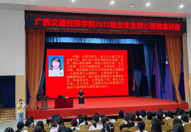 為增強女生自我保(bǎo)護(hù)意識,促進(jìn)學生健康成長,9月2日(rì)下午,我院邀請第五人民醫院醫師何梅(méi)到(dào)校做了一次精彩生動的女生(shēng)生理心理(lǐ)健(jiàn)康專題講座。學生工作科副科長韋豔芳主持講座,學院2022級全體女生參加。