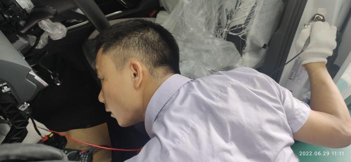 韋禮勝老師正在對車輛進行檢測