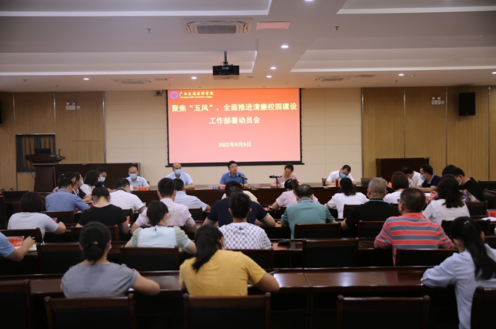 6月9日上午,學院在(zài)綜合(hé)樓(lóu)1619會議室組織(zhī)召(zhào)開推(tuī)進清廉校園建設工作部署動員會。學院黨委(wěi)書記賴國秋作動員部署講話,在家院領導、全體中層領導幹部參加(jiā)會議。