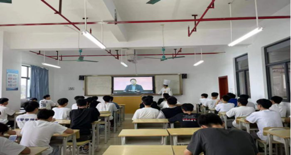 學生認真觀看《勞動創(chuàng)造美好 技能點亮人生》開學第(dì)一(yī)課