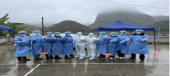 誌願者與醫護人員一起為百色戰勝疫(yì)情加油