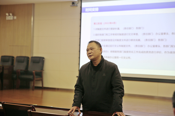 辦公室副主任楊華(huá)對製(zhì)度文件的分類及處理方法作說明