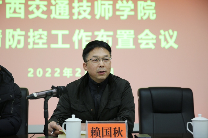 2月7日,學院在綜合樓1619會議室組織召開疫情防控(kòng)工作布置會議,貫徹落實自治區黨委政府及交通運輸廳疫情防控工作要求,對持(chí)續做好學(xué)院疫情防控工作進行再動員、再(zài)部署、再強化,築牢疫情防控屏障。學院領導、各(gè)部門負責(zé)人參加會議,學院黨委書記(jì)賴國秋主持會議。
