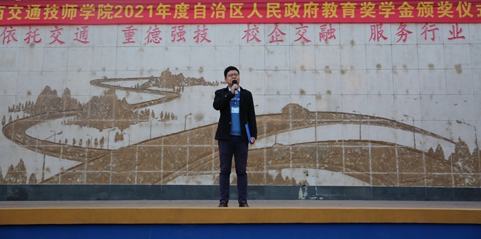 12月13日上午,2021年度自治區人民政府教育獎學金頒獎儀式在我院燈光球場(chǎng)隆重舉行(háng)。學院黨委副書記、紀委書(shū)記韋昌甲,副院長樊海(hǎi)林為獲獎學生(shēng)代表進行頒(bān)獎,頒獎儀(yí)式(shì)由學生工作科副科長孫廣福主持,全體師生參加了頒獎儀式。