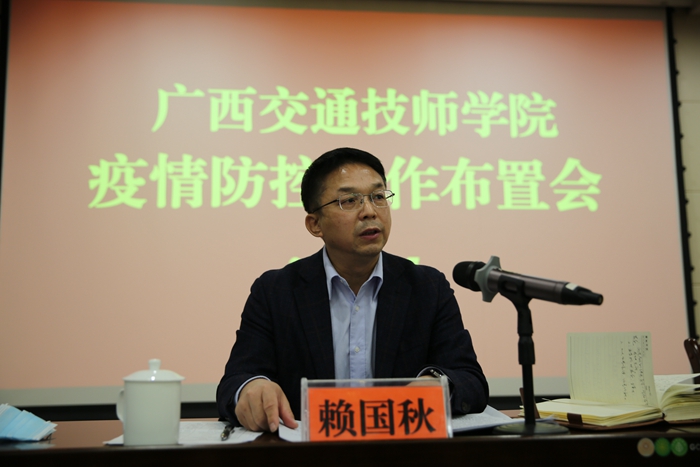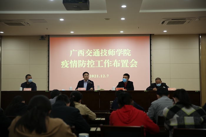 為落實全國、全區及自治區交通運輸廳12月7日(rì)疫情防控電視電話會議精神,從嚴從緊落實疫情(qíng)防控措(cuò)施,確保“外防輸(shū)入(rù)、內防反彈”策(cè)略落實到位,維護全院師生身體健康安全(quán),當天下午6時,我院召(zhào)開新型冠狀病毒感(gǎn)染的肺炎疫情防控工作布置會。學院(yuàn)黨委書記(jì)賴國秋(qiū),副書記、紀委書記韋昌甲(jiǎ),副院長樊海林、黃七零及各部門負(fù)責人參加會議。