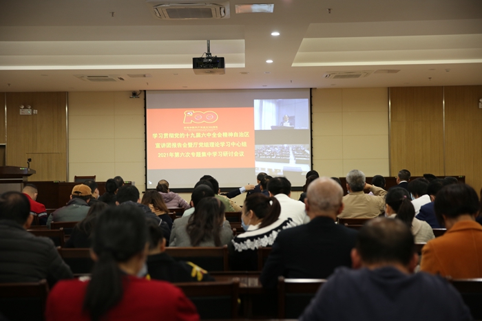 會上,自治區宣講團成員、自治區人民政府參事、研究員李秋洪從(cóng)深刻領會學習黨的百年(nián)奮鬥重大(dà)成就和曆史(shǐ)經驗、深刻認識(shí)黨的百年奮鬥曆史的初心使命和偉大成就、深刻認識中國特色社會主(zhǔ)義新時(shí)代的曆史(shǐ)性成就(jiù)和曆史性變(biàn)革、深(shēn)刻認(rèn)識黨的百年奮鬥的曆史意義和曆史經驗、深刻認識以史為鑒、開創未來的要求、從黨的百(bǎi)年奮鬥曆程中汲取智(zhì)慧和力量等六個方麵,運用生(shēng)動的案例、豐富的史實、詳實(shí)的(de)數據,係統解讀和深入闡釋了黨的十九(jiǔ)屆六(liù)中全會精神,並結合學習貫徹習近平總書記視察廣西“4.27”重要講(jiǎng)話精神和自治區第十二次黨代會精神,針(zhēn)對(duì)廣西“十四五”規劃和2035年(nián)遠景目標、精品欧美一区二区在线看片運輸發展“十四五”規(guī)劃目標、重點任務及建設壯美廣西“1+1+4+3+N”目(mù)標任務體係等內容(róng)作專題宣(xuān)講。我院參會人員認真聽講(jiǎng),做好筆記,仔(zǎi)細聆聽李秋洪研(yán)究員深入淺(qiǎn)出的宣講,為準確把握、深刻理解全會的精神實質打下堅實的基礎。