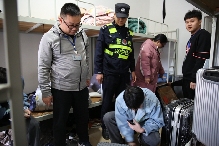 為認真貫徹落(luò)實習近平總書記(jì)“從根本上消除隱患,有效遏製重特大事故發生”的重(chóng)要指示精神,加強宿舍的安全管理,11月24日,我院學生工作科聯合南寧市公安局興寧分局邕(yōng)武派出所、腰塘派出所、武鳴區雙橋派出所對(duì)學生宿舍進行(háng)安全大檢查。