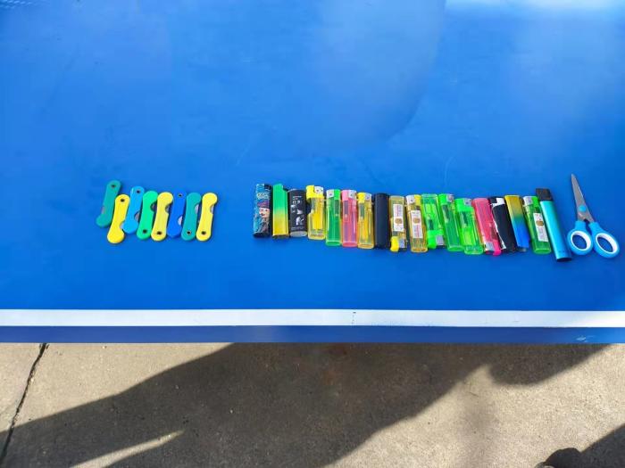 本次行動重點檢查管(guǎn)製刀具、大功率電器、毒品等違禁品,各檢查人員逐一對各間宿舍內學生床鋪、行李箱、床底等地方進(jìn)行清查,排查效果顯著,共收繳(jiǎo)登記打火機148個、煙23包、電(diàn)子煙5個、插排26個、吹風筒17個、電磁鍋4個、卷發棒4個、熱水壺2個、熱得快1個、剪刀17把、削筆刀(dāo)8把(bǎ)、水果刀6把、菜刀1把。下一步學院將加強對校園安全隱患的排查,助力平安校園的建設。