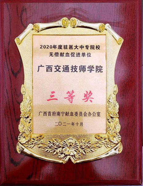 我院榮獲2020年駐邕大中專院校無償獻(xiàn)血(xuè)促進(jìn)單位三等獎(jiǎng)