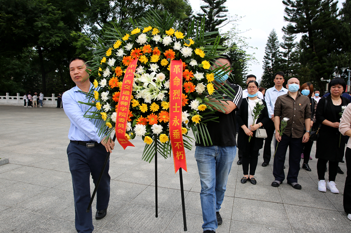學院黨員代表向革命烈士敬(jìng)獻花圈(quān)
