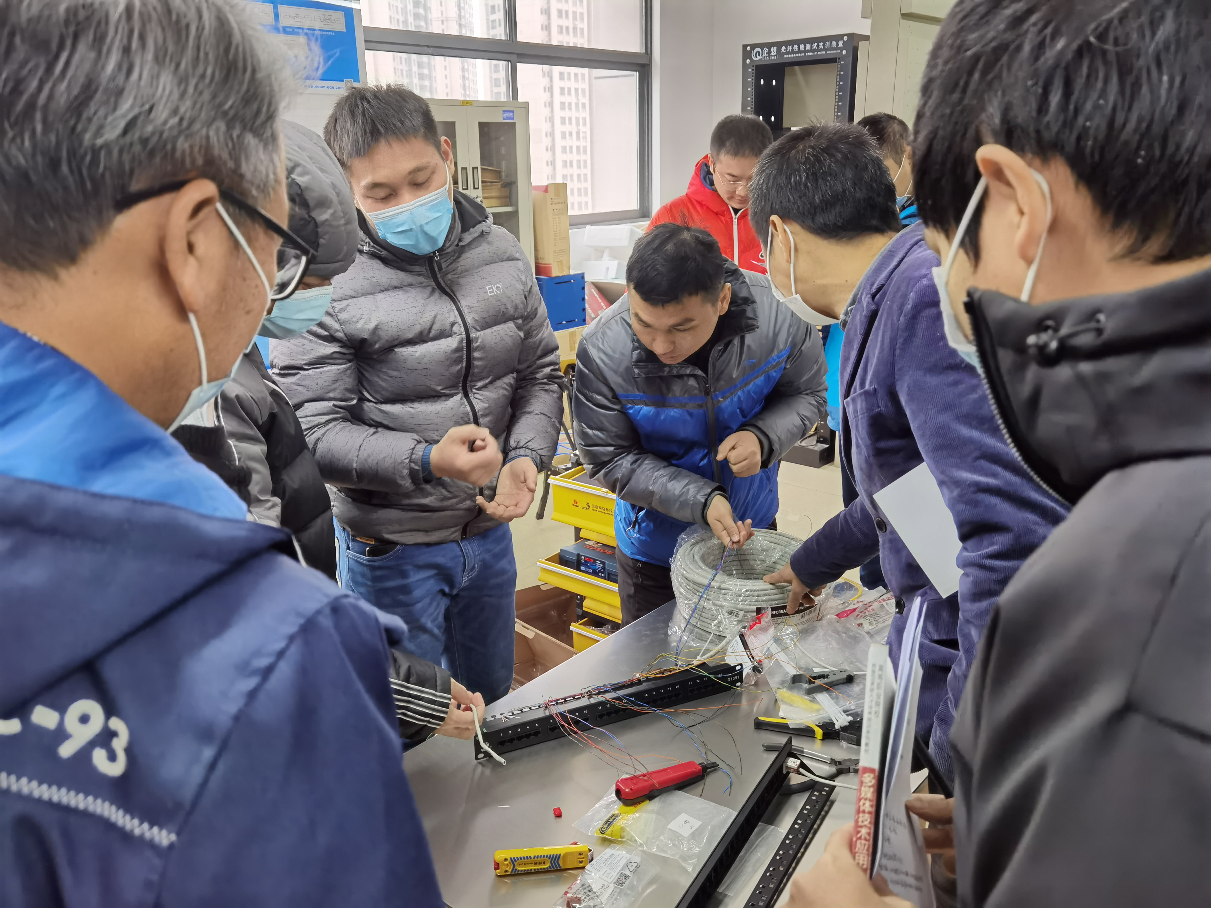 本次培訓圍繞世界技能大賽網絡布(bù)線項目競賽標準及教學要求進行,內容包含銅纜布線係統安裝、光纜布線係(xì)統按安裝兩大模塊。教師們通過2天的緊張培(péi)訓,了解和掌握到信息模塊端接、銅纜配線設備安裝、工作區信息點安裝等操作,提升了教師的專(zhuān)業技能素(sù)養,為今後教學(xué)工作開展及(jí)競賽籌備打下了基礎。