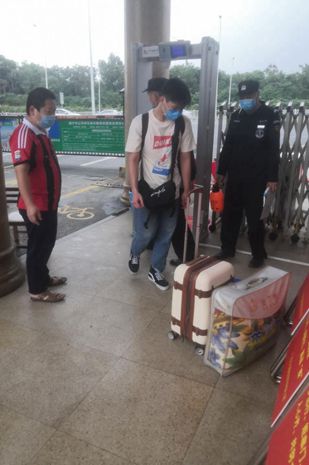 4月19日下午2:30分,第一名返校同學到校報到。按照(zhào)學院疫情(qíng)防控相關程序,家長在校門(mén)口止步,學生進入校門口進入測溫區檢測體(tǐ)溫,進行(háng)登記,然後用免洗消毒水洗手,門衛對學生隨身行李噴(pēn)灑消毒水進行消毒,並更(gèng)換口罩。隨後,返校(xiào)學生(shēng)按照學院規劃路線進入宿舍(shě)。