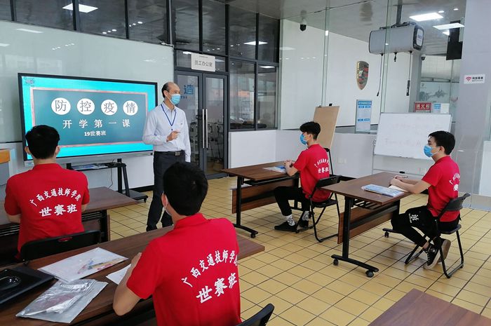 4月20日,學院(yuàn)精心準備了“開學(xué)複課(kè)防疫第一課”。上午(wǔ)9點整,世賽(sài)班的8名選手(shǒu)在保時捷實訓教室認真聽(tīng)講由學院(yuàn)關菲明副院長、主教練團隊、班主(zhǔ)任帶來的“特殊(shū)的開學第一(yī)課”,開展愛國主義教育、衛生健康教育、心理健(jiàn)康(kāng)教育和安全教育。引導選手們及時調整學習備賽計劃,幫助他們增強自信心,理性看待(dài)疫情(qíng),為最後的衝(chōng)刺訓練做(zuò)好準備。