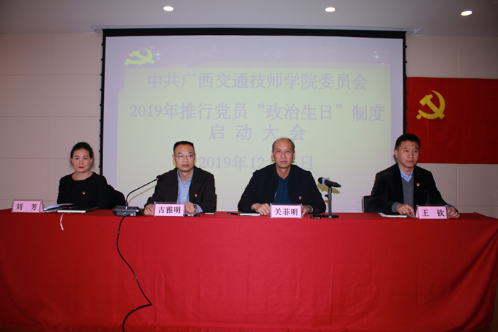 2019年12月25日下午,我院於(yú)綜合樓1619會議室隆重召(zhào)開2019年黨委推行黨員“政治生(shēng)日”製度啟動(dòng)大會。我院黨委書記古雅明主持本次大會,副院長關菲明,劉芳,王欽出席會議。各黨支部書記、全體在職黨員參加會議。